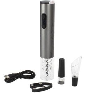 Set de bar, Set de cuerina, en forma sextagonal, incluye sacacorchos con destapador, argolla anti goteo y boquilla metálica.