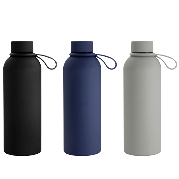 Botella doble pared, sellada al vacío. Interior de acero 304 y exterior de acero 201. Tapa a rosca de acero 201, interior plástico con anillo de silicona. Asa de silicona para un transporte fácil. Pintura con terminación suave al tacto. Mantiene hasta 6 hs la temperatura de las bebidas calientes y 12 hs de las bebidas frías.