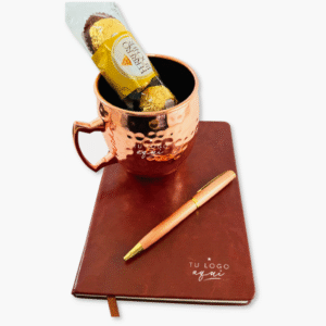 Incluye: Tazón mule cobrizado ideal para mantener el frío de tus tragos favoritos. Capacidad 550 ml. Agua tónica. 3 Bombones Ferrero Rocher.