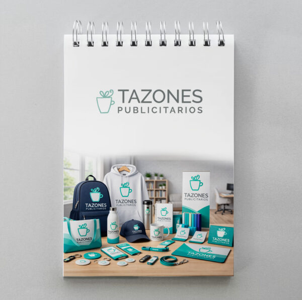 Libreta corporativa anillada, tapa blanda, 80 hojas blancas, ambas tapas personalizadas.