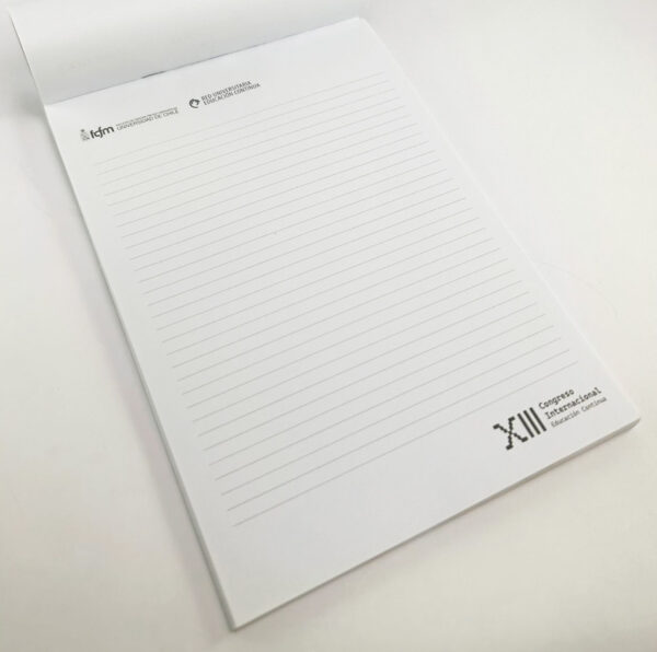 Libreta personalizada, 50 hojas 1 color, encoladas.