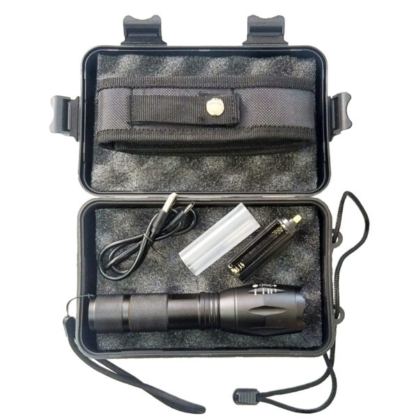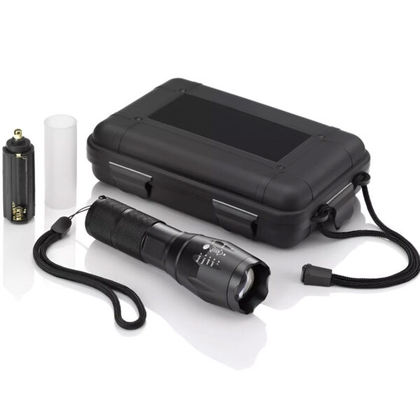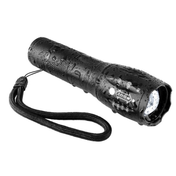 Linterna resistente al agua, tiene 5 modos: alto, medio, bajo, estroboscópico y alto brillo.