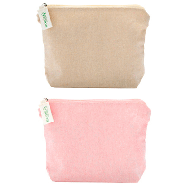 Necessaire de algodón reciclado. Cierre a tono con tirador de algodón de 4,5 x 2 cm.