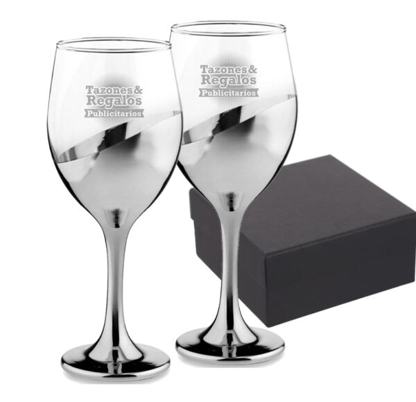 Set 2 Copas de Vino Plateadas Grabadas 400 ml.