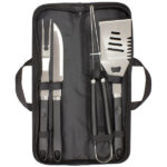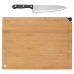 35,7 x 10,3 x 3,8 cm (estuche cerrado). Acero inoxidable 420. Set de 2 utensilios: cuchillo de 32,2 cm y tenedor con sistema de expulsión de 33 cm, ambos con mango de madera de caucho.